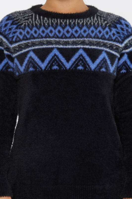 Sweter Angora Wzorzysty Długi Rękaw Czarny-Sax - 30682 | KAZEE (zestaw 3 sztuk S-M-L)
