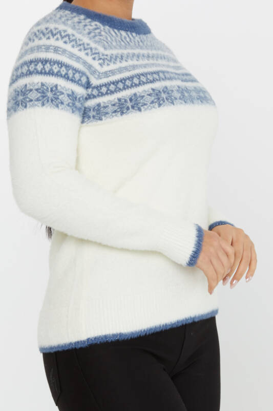 Sweter Angora Wzorzysty Długi Rękaw Ecru-Niebieski - 30682 | KAZEE (zestaw 3 sztuk S-M-L)