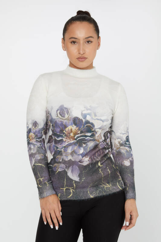 Angora Triko Çiçekli Ekru - 50016 | KAZEE (2'li Set S-M)
