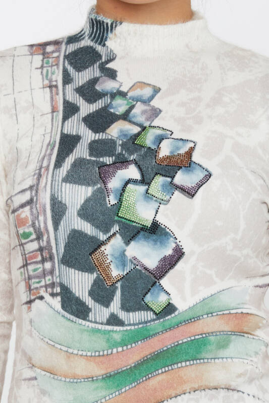 Angora Triko Taş İşlemeli Uzun Kollu Ekru - 50000 | KAZEE (2'li Set S-M)