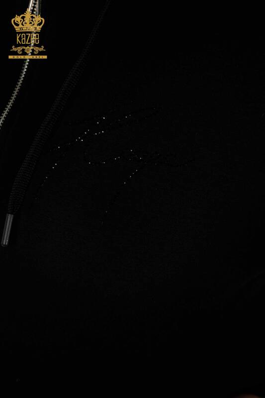 Set de trening de damă cu ridicata cu broderie de piatră și fermoar cu glugă albastră - 20448 | KAZEE