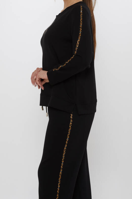 طقم رياضي مخطط بتفاصيل شريط مطرز باللون الأسود - 17902 | كازي (مجموعة من 3 مقاسات L-XL-2XL)