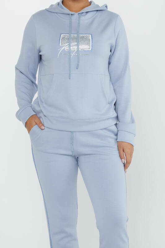 طقم رياضي هودي مطرز بالحجر الأزرق - 17593 | كازي (مجموعة من 4 M-L-XL-2XL)
