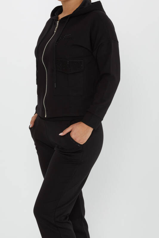 طقم رياضي بجيب هودي مطرز بالحجر الأسود - 17426 | كازي (مجموعة من 4 S-M-L-XL)