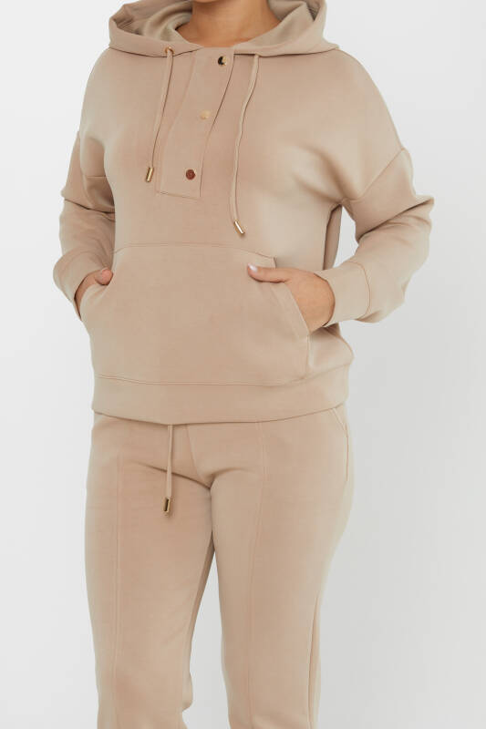 طقم رياضي بجيب بغطاء للرأس بيج - 17627 | كازي (مجموعة من 4 S-M-L-XL)