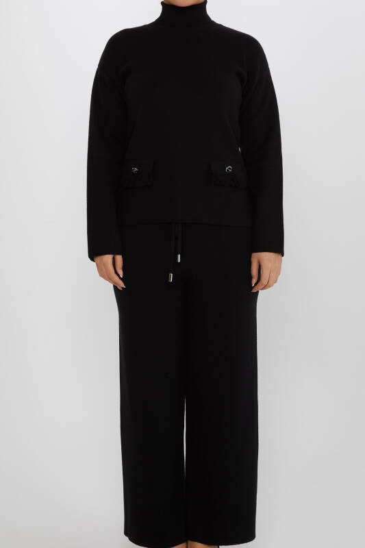 بدلة مزدوجة بجيب خصر مطاطي أسود - 31677 | كازي (مجموعة من 3 S-M-L)