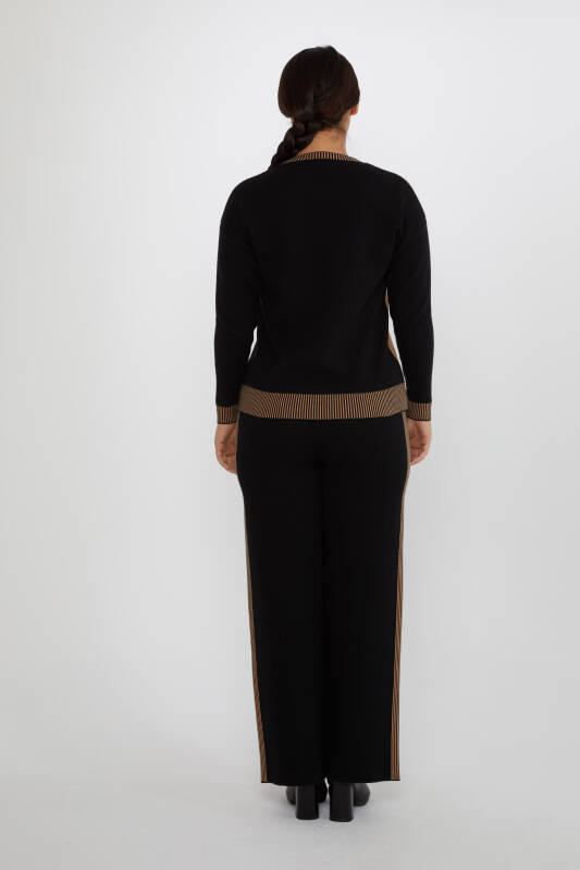 بدلة مزدوجة لونين خصر مطاطي أسود - مينك - 31686 | كازي (مجموعة من 3 مقاسات M-L-XL)
