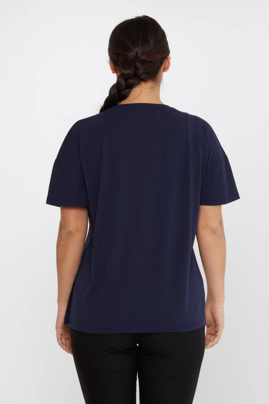 بلوزة بأزرار حجرية كم قصير أزرق كحلي - 79998 | كازي (مجموعة من 3 مقاسات M-L-XL)