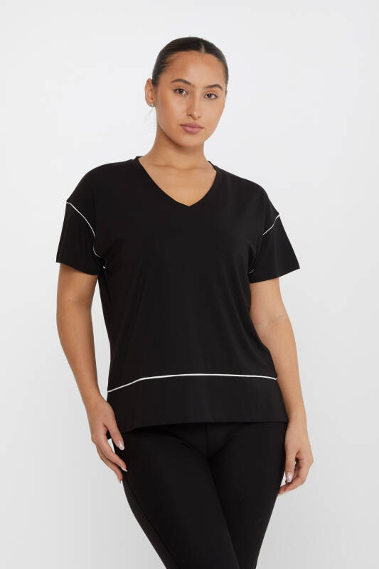 بلوزة برقبة على شكل حرف V وأكمام قصيرة باللون الأسود - 80002 | كازي (مجموعة من 3 مقاسات M-L-XL)