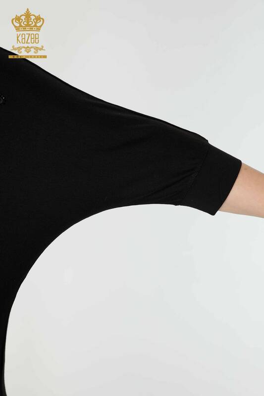 بلوزة نسائية بالجملة مطرزة بأحجار الفراشة الملونة باللون الأسود - 77901 | كازي