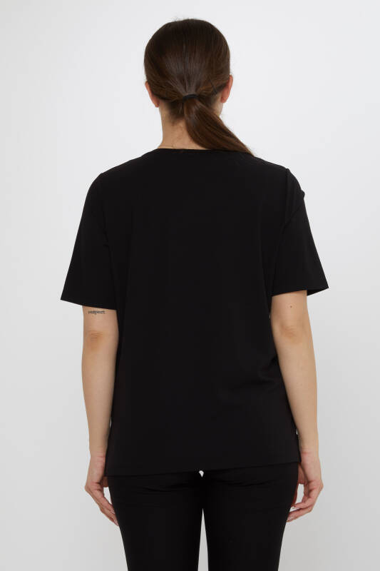 بلوزة منقوشة باللون الأسود بأكمام قصيرة - 80078 | كازي (مجموعة من 3 مقاسات L-XL-2XL)