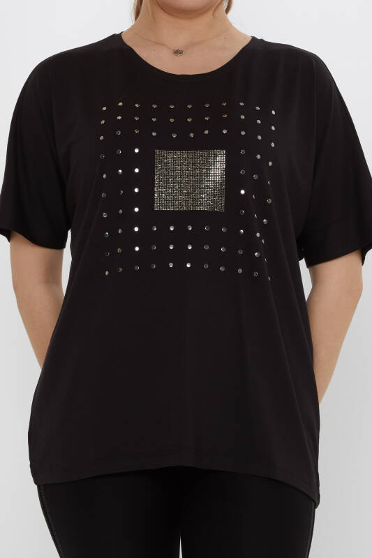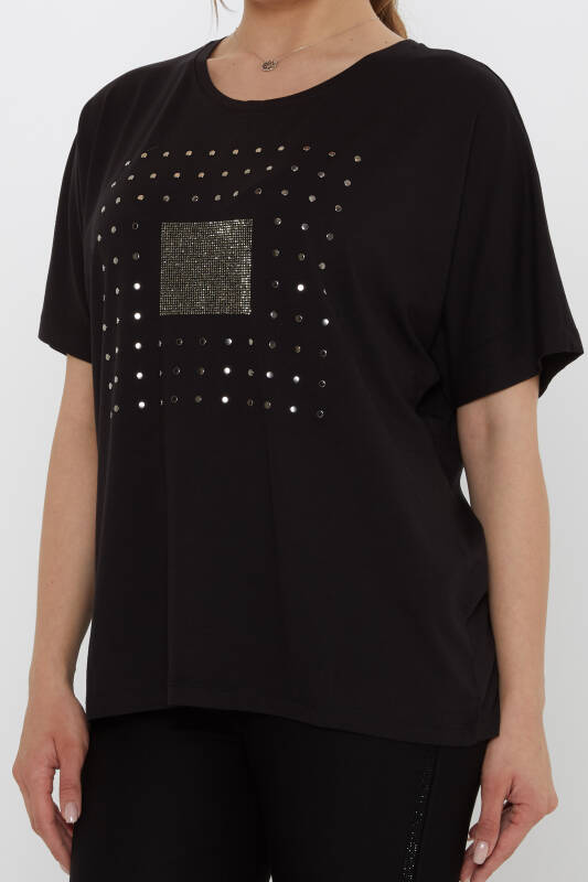 بلوزة سوداء قصيرة الأكمام مزينة بأحجار - 79603 | كازي (طقم من 4 قطع، مقاسات: L-XL-2XL-3XL)