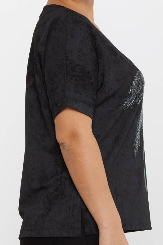 بلوزة شجرة نخيل كم قصير مطرزة أسود - 79994 | كازي (مجموعة من 3 مقاسات M-L-XL)