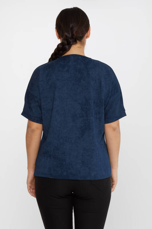 بلوزة شجرة نخيل كم قصير مطرزة كحلي - 79994 | كازي (مجموعة من 3 مقاسات M-L-XL)