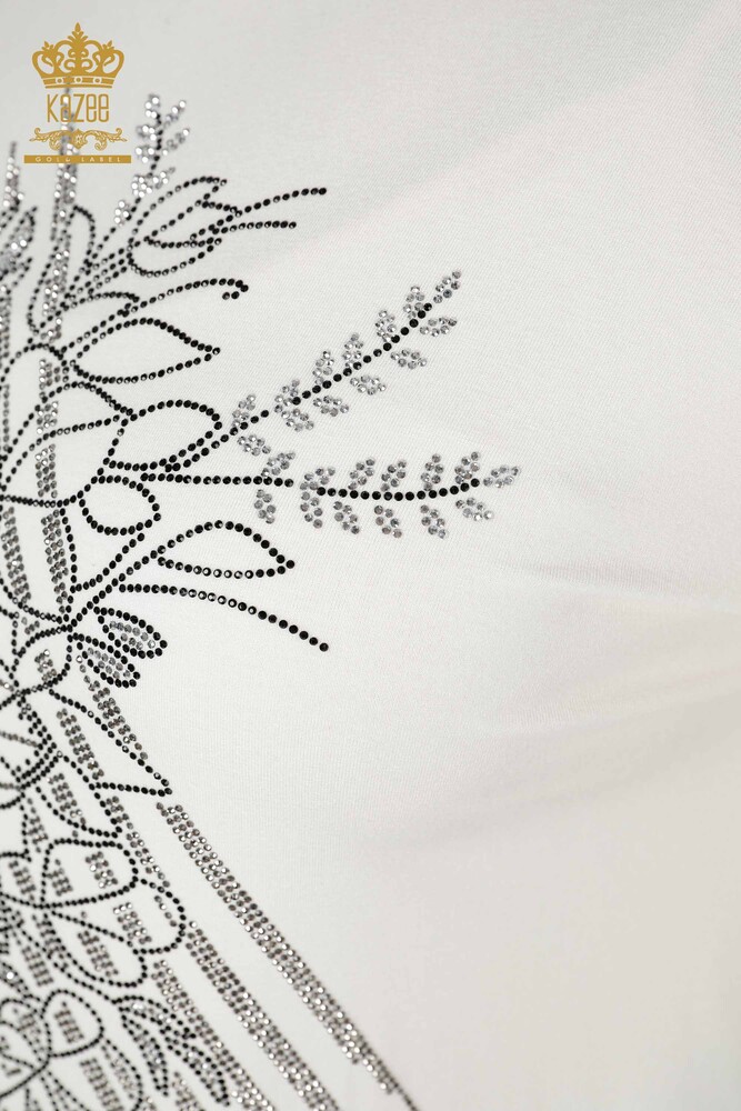 بلوزة نسائية بالجملة مطرزة بأحجار الكريستال وياقة دائرية مطرزة باللون البني الفاتح - 78944 | كازي