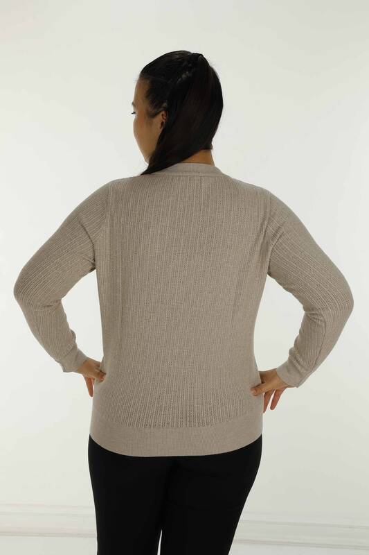 كارديجان تريكو بأكمام طويلة وياقة دائرية وأزرار من فرو المنك - 31070 | كازي