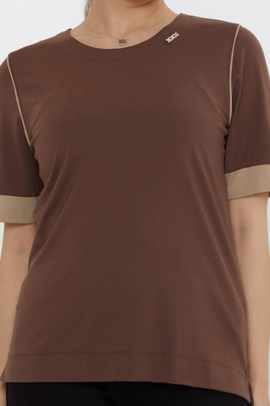 Blouse Crew Neck Short Sleeve Brown - 80028 | KAZEE (Set of 3 M-L-XL)