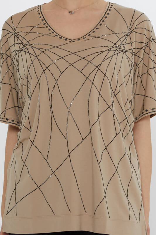 Blouse Glitter Detailed Stone Embroidered Beige - 80001 | KAZEE (Set of 3 L-XL-2XL)