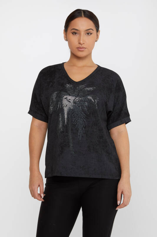 Blouse Palm Stone Embroidered Short Sleeve Black - 79994 | KAZEE (Set of 3 M-L-XL)