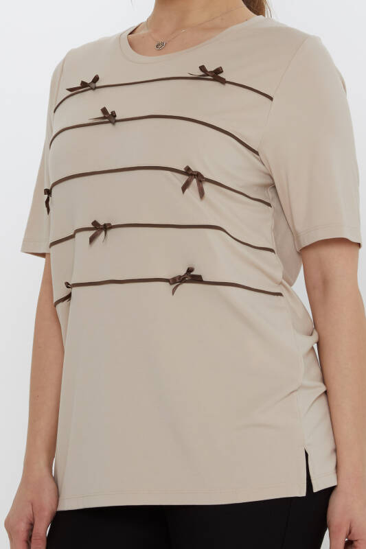 Blouse Ribbon Patterned Short Sleeve Mink - 80050 | KAZEE (Set of 3 M-L-XL)