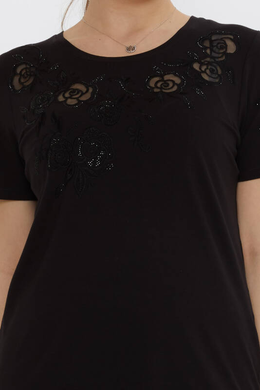 Blouse Rose Patterned Stone Embroidered Black - 80125 | KAZEE (Set of 3 M-L-XL)
