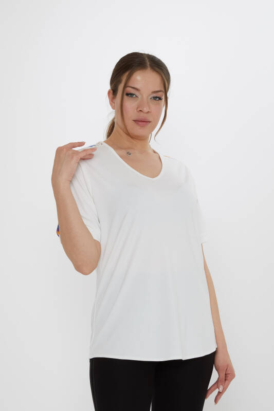 Blouse with Star Knit Short Sleeves, Ecru - 80042 | KAZEE (3-Piece Set M-L-XL)