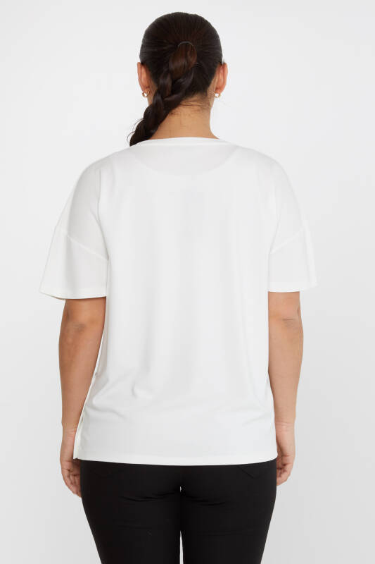 Blouse Stone Buttoned Short Sleeve Ecru - 79998 | KAZEE (Set of 3 M-L-XL)