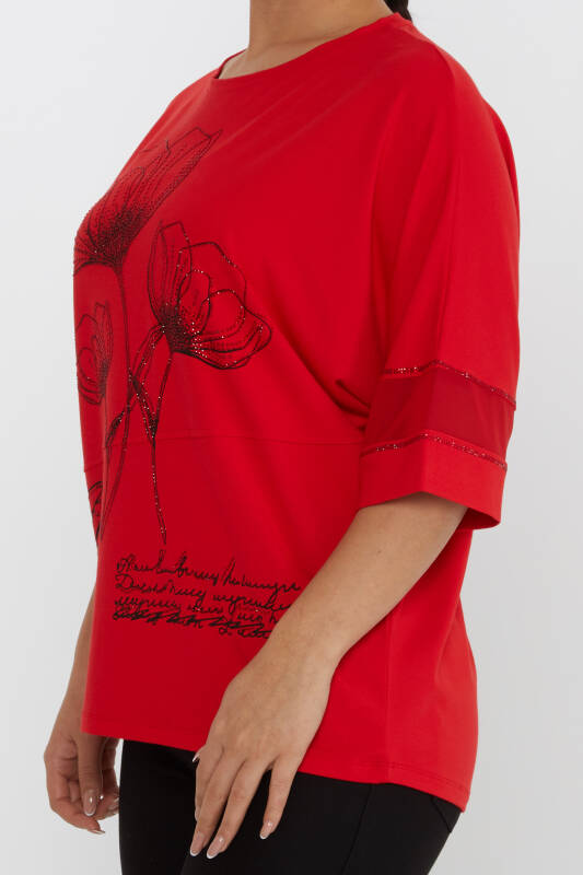 Blouse Tulle Stone Embroidered Red - 80112 | KAZEE (Set of 4 M-L-XL-2XL)