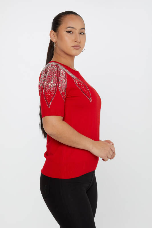 بلوفر تريكو موديل أمريكى حجر مطرز أحمر - 31238 | كازي (مجموعة من 3 S-M-L)