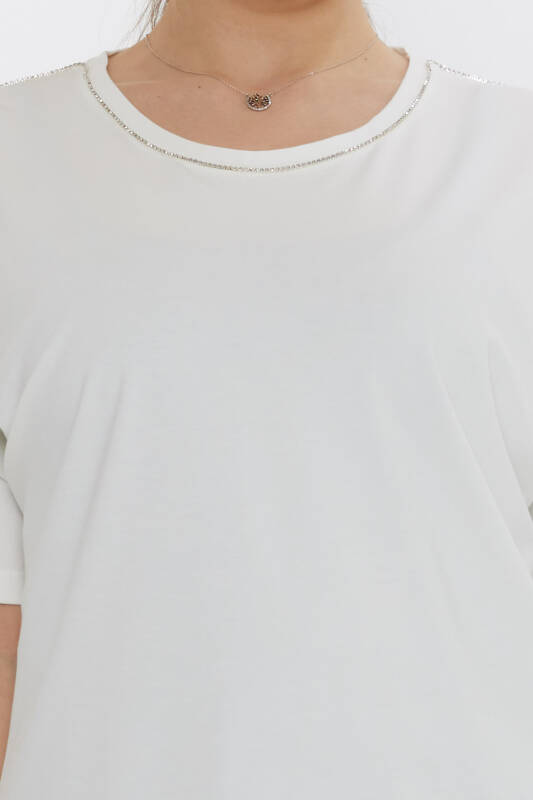 Blusa Piedra Bordada Manga Corta Crudo - 80031 | KAZEE (Juego de 3 M-L-XL)