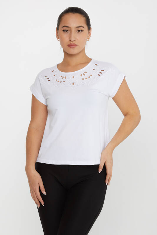 Blusa Agujero Detallado Bordado Ecru - 79872 | KAZEE (juego de 4 tallas S, M, L y XL)