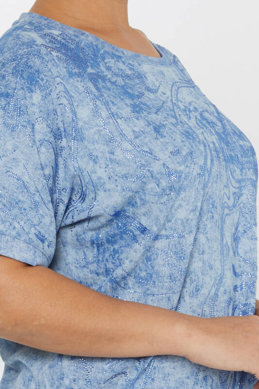 Blusa modello pietra ricamata manica corta blu - 79990 | KAZEE (Set da 3 M-L-XL)