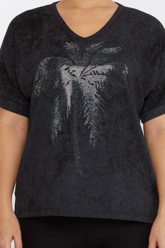 Blusa Palmera Bordada Manga Corta Negro - 79994 | KAZEE (Juego de 3 M-L-XL)