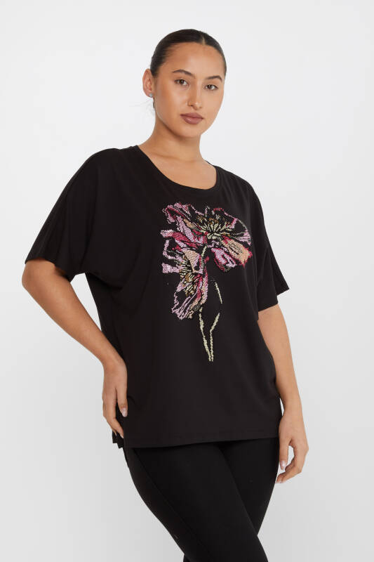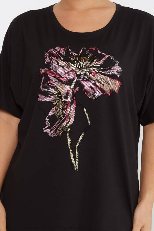 Blusa Pietra Colorata Ricamata Manica Corta Nero - 79634 | KAZEE (Set di 4 M-L-XL-2XL)