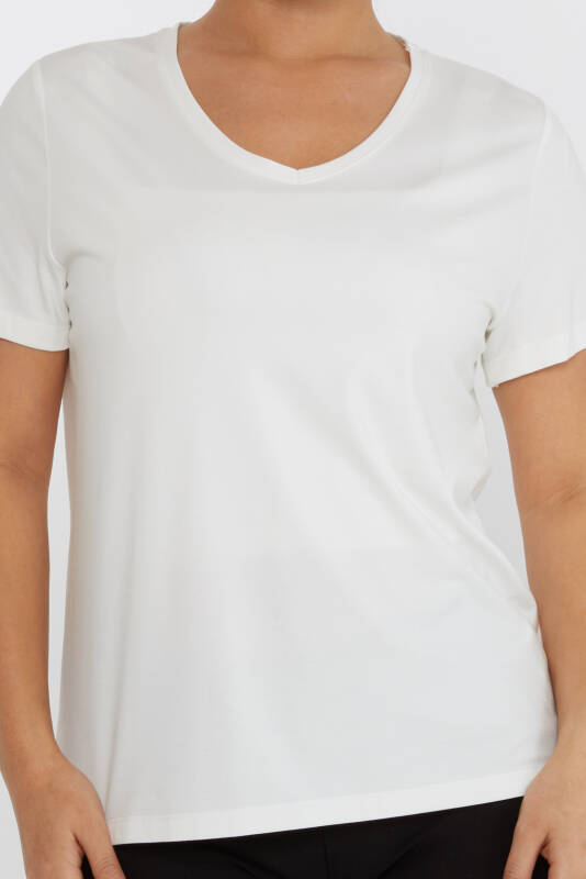 Blusa Stone Ricamata Scollo V Ecru - 80014 | KAZEE (Set di 3 S-M-L)
