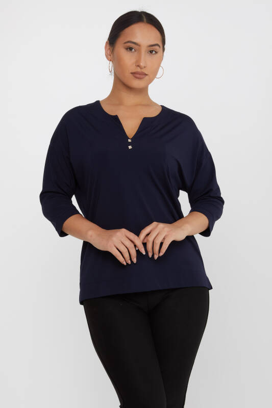 Blusa Scollo a V Stoned Blu Navy - 80029 | KAZEE (Set di 3 L-XL-2XL)