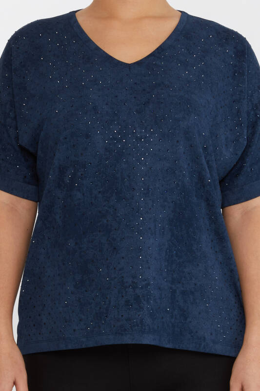 Blusa Stone Ricamata Scollo a V Blu Navy - 79985 | KAZEE (Set di 3 M-L-XL)