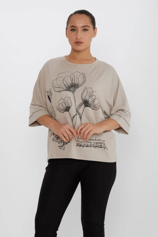 Camicetta in tulle con ricamo in pietra in visone - 80112 | KAZEE (Set di 4 M-L-XL-2XL)