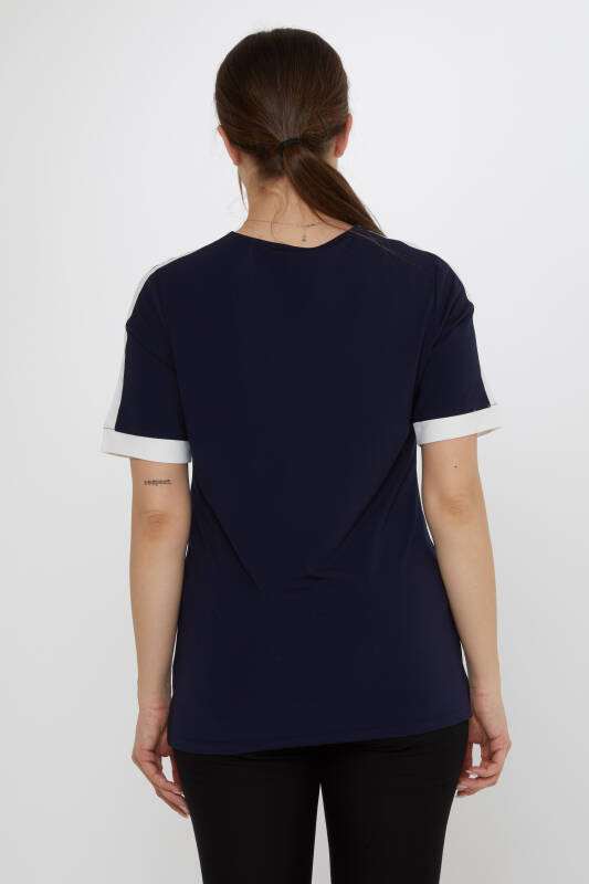 Bluse Kurzarm Geknöpft V-Ausschnitt Marineblau - 80024 | KAZEE (3er-Set M-L-XL)