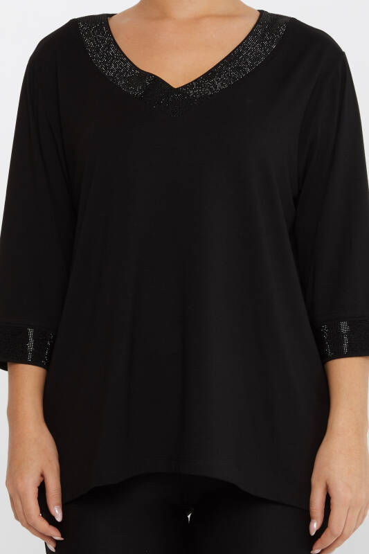 Bluse mit Steinstickerei und V-Ausschnitt, Schwarz – 79395 | KAZEE (3er-Set L-XL-2XL)