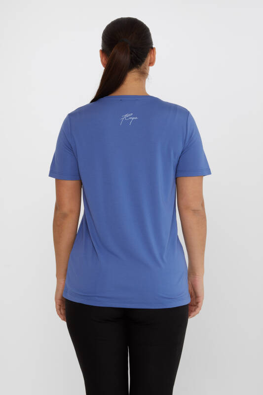 Bluse mit V-Ausschnitt und Steinstickerei, Indigo – 80014 | KAZEE (3er Set S-M-L)