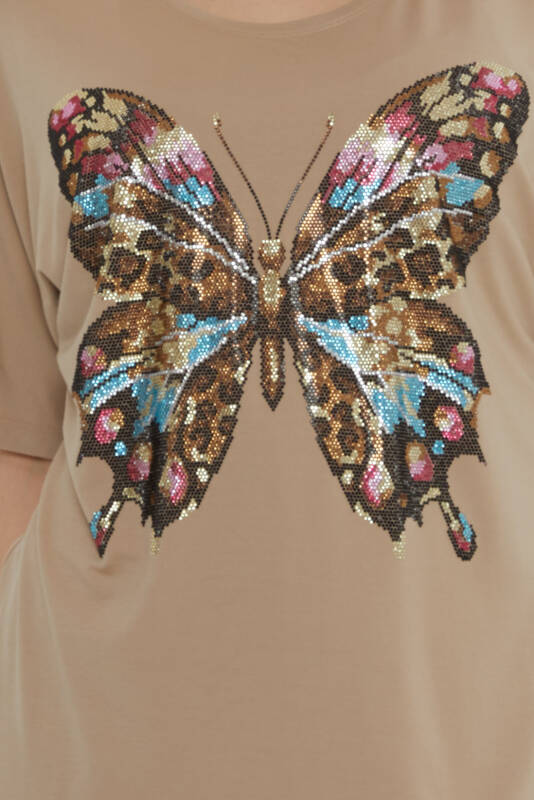 Bluse Schmetterling gemustert bunt Stein bestickt Beige - 80046 | KAZEE (3er-Set L-XL-2XL)