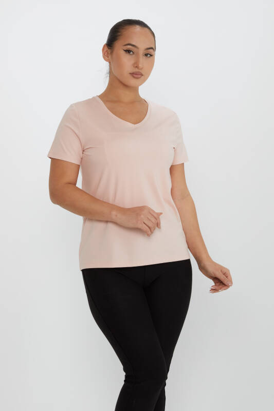 Bluse mit Steinstickerei, V-Ausschnitt, Puder - 80014 | KAZEE (3er Set S-M-L)