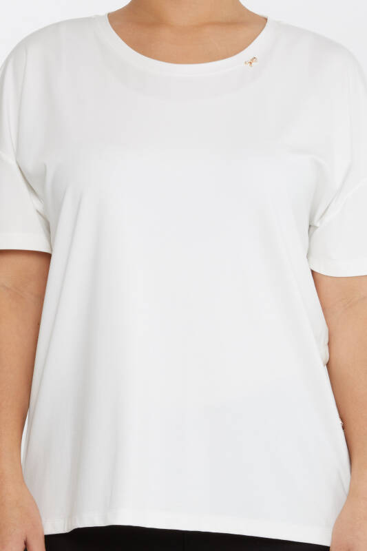 Bluse Stoned Buttoned Kurzarm Ecru - 79998 | KAZEE (3er-Set M-L-XL)