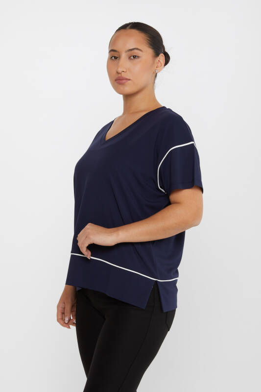 Bluse mit V-Ausschnitt und kurzen Ärmeln, Marineblau – 80002 | KAZEE (3er-Set M-L-XL)