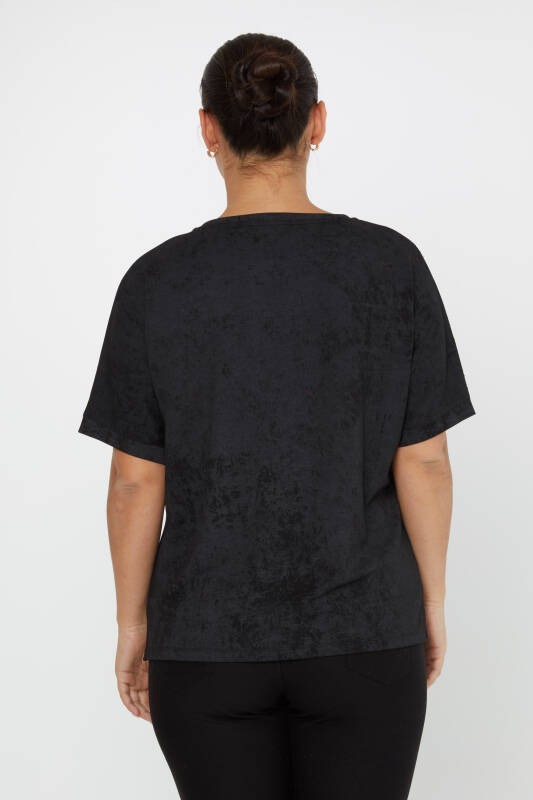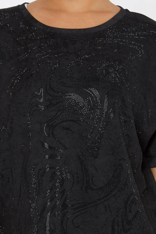 Bluse mit Steinstickerei und kurzen Ärmeln, Schwarz – 79990 | KAZEE (3er-Set M-L-XL)