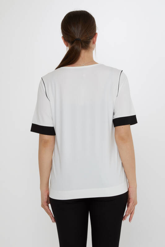 Bluz Bisiklet Yaka Kısa Kollu Ekru - 80028 | KAZEE (3'lü Set M-L-XL)