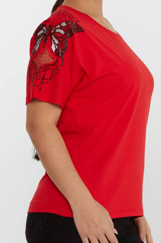 Camicetta Manica Farfalla Motivo Pietra Ricamato Rosso - 79613 | KAZEE (Set di 4 M-L-XL-2XL)