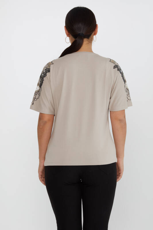 Chemisier à manches papillon en vison brodé de pierres - 79613 | KAZEE (Lot de 4 M-L-XL-2XL)