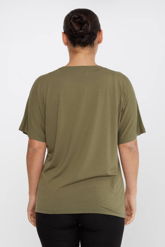 Блузка с вышивкой в виде цветных камней, короткий рукав, цвет хаки - 79634 | KAZEE (Набор из 4 шт. M-L-XL-2XL)